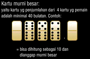 - Kartu murni besar yaitu 4 kartu yang di miliki pemain jumlah keseluruhan bulatannya berjumlah minimal 40 bulatan