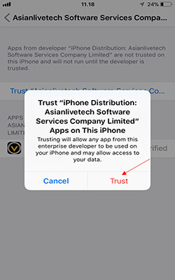 - Setelah itu akan muncul pilihan, Klik "Trust" dan kembali lagi ke app PKV Games