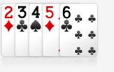 Kartu Straight (berurutan) : 5 kartu berurutan, contohnya 2 3 4 5 6 atau 10 J Q K As atau juga 5 6 7 8 9. - Kartu Flush (semua motif sama)