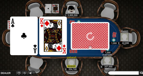 Setelah pemain diberikan 2 kartu, lalu pemain diberikan kesempatan untuk memirit (mengintip) kartu yang telah diberikanimages